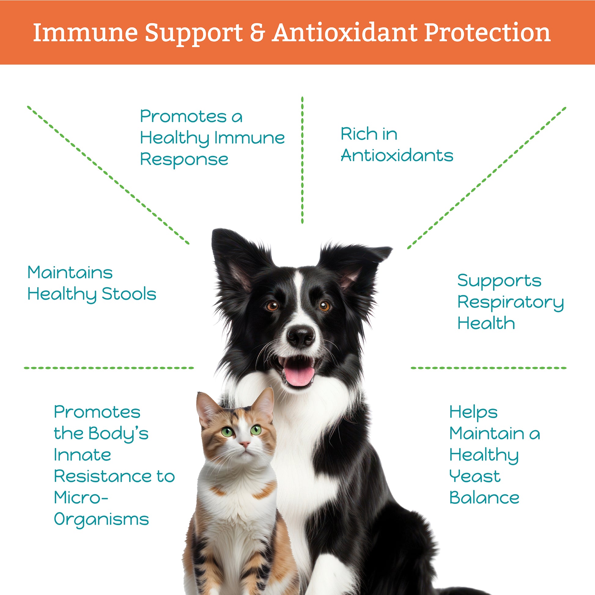 - FORMULATED FOR CATS AND DOGS! - Immune-ity supports your pet's natural defenses! Antioxidant-rich herbal blend promotes a healthy immune response. Helps maintain yeast balance, supports healthy microbiome, which can help create an environment that is less hospitable to unwanted organisms, fights free radicals, supports healthy stools, and respiratory health, ensuring your furry friend feels their best everyday.